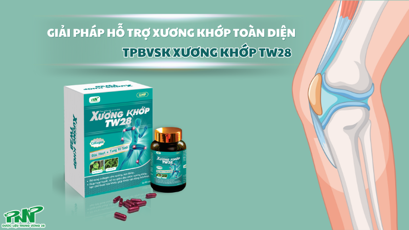 Bên cạnh chế độ ăn uống đầy đủ dinh dưỡng và luyện tập đều đặn, TPBVSK Xương Khớp TW28 là lựa chọn hỗ trợ tuyệt vời giúp duy trì sức khỏe hệ xương khớp. Sản phẩm là sự kết hợp hài hòa giữa thảo dược thiên nhiên và dưỡng chất hiện đại, giúp cải thiện các triệu chứng đau nhức, cứng khớp và tăng khả năng vận động.