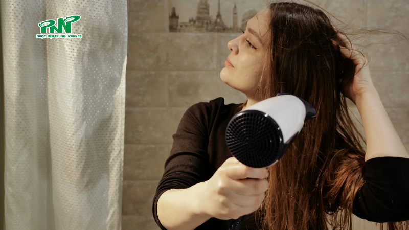 Sau khi gội đầu, việc làm khô tóc là bước không thể bỏ qua. Trong mùa nồm, nếu để tóc khô tự nhiên, độ ẩm trong không khí sẽ khiến tóc dễ bị rối và yếu hơn.