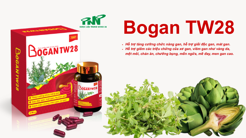 Nếu cần hỗ trợ giải độc gan từ thảo dược, bạn có thể tham khảo sản phẩm Bogan TW28 với công thức từ nhiều dược liệu giúp tăng cường chức năng gan và hỗ trợ cải thiện các triệu chứng do suy giảm chức năng gan.